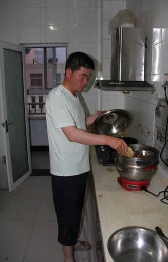 老楊正在準備早餐 老楊在乘車站點等待班車