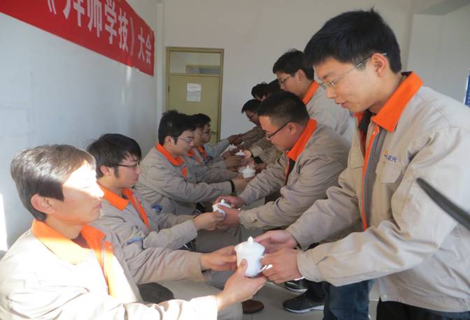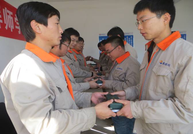 為盡快提高新員工的專業水平,保證裝置安全平穩生產,11月18日,新啟元運行一部舉行了“導師帶徒,拜師學技”儀式。部門經理、裝置技術員和七對師徒參加了此次儀式。