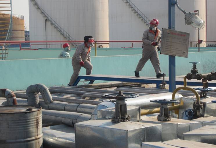 為檢驗儲罐冒油事故應急預案的可行性和可操作性,檢驗現場操作人員對應急事件的反應和處理能力,2014年1月22日下午,運行三部在純苯罐區組織了儲罐冒油事故應急演練。公司安全副總劉立新到現場進行指導,運行三部副經理張長明帶領部門員工參加此次演練活動。
