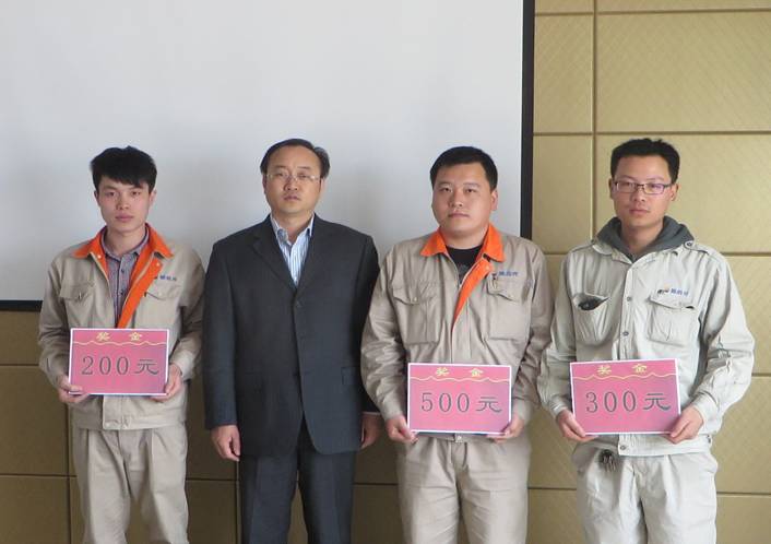 匯報結束后,根據前期合理化建議管理小組評選出的優秀合理化建議,分別對一、二、三等獎員工進行獎勵。