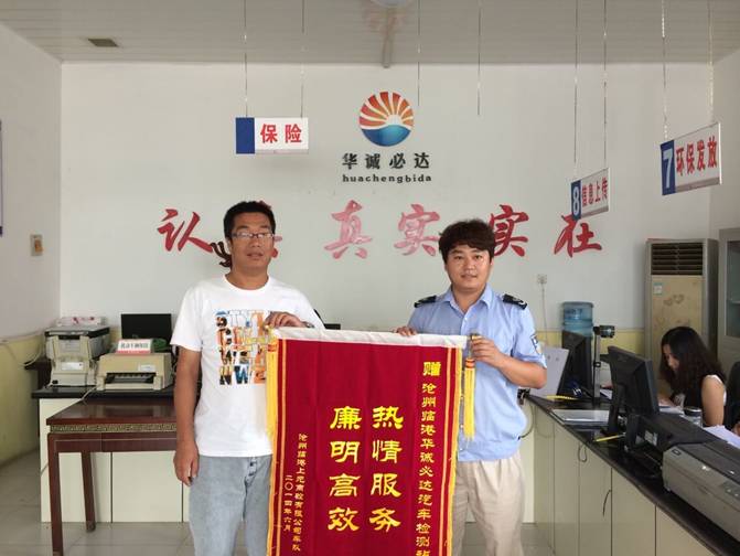 7月2日,滄州臨港上元商砼有限公司車隊的肖先生興沖沖地來到汽車檢測公司,指著手里的錦旗說:“我前幾天來貴公司辦理車輛年檢業務,來得時候已經快下班了,當時下著小雨,我的車在中間照相環節出了一個小問題,怎么都審不過去,由于第二天急著出差,我真是心急如焚,幸虧貴公司的員工及時想辦法耐心幫我咨詢解決問題。為了表達我的心情,做了這面‘熱情服務,廉明高效’的錦旗,表示感謝。”