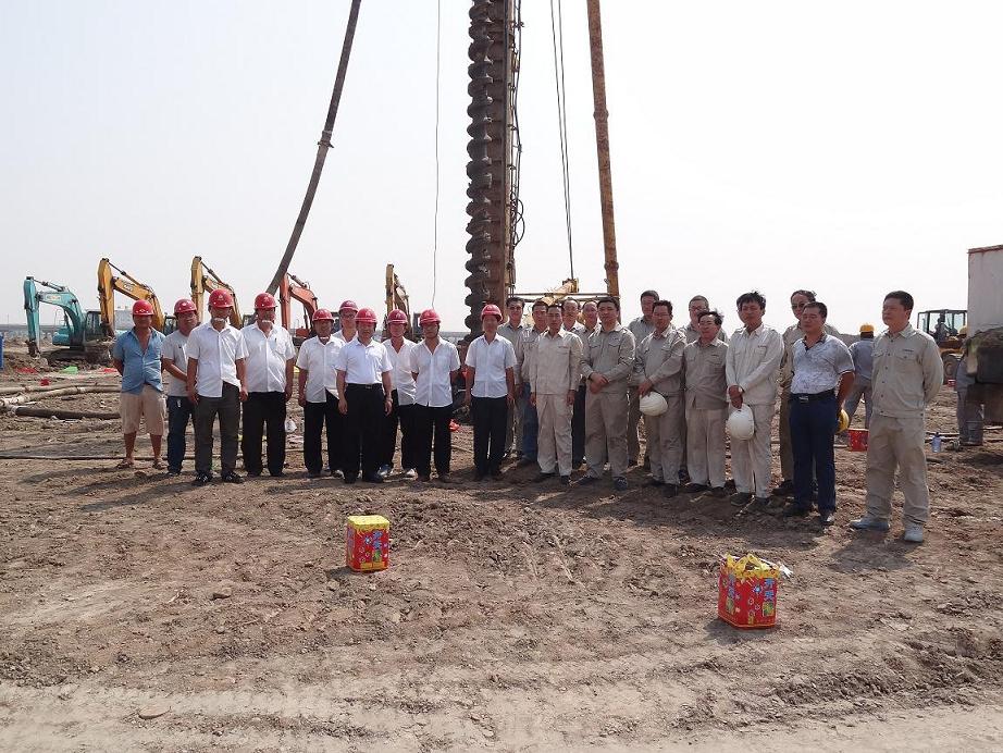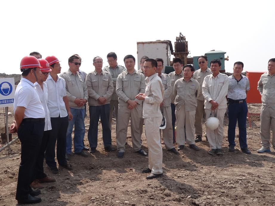 各位領導在樁基施工現場合影留念
