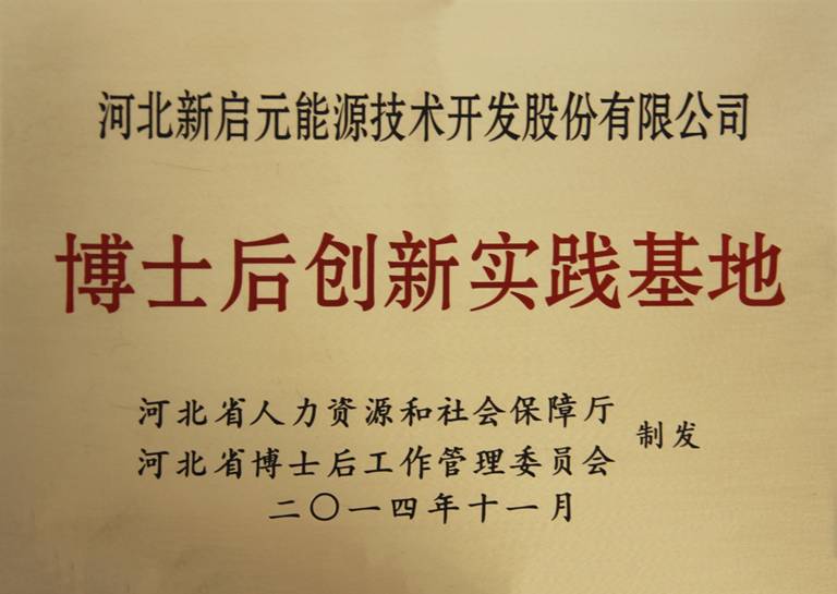 2014年4月,新啟元公司向河北省人力和社會保障廳遞交了博士后創新實踐基地申報材料,經過有關專家的研究討論,順利通過了資格審核。7月份,人社廳有關領導攜專家組,到公司進行現場審核,新啟元總工程師鄭擁軍、技術工程部經理劉賢成,詳細介紹了新啟元公司創新情況及發展計劃,并帶領專家組一行到現場參觀,獲得了一致好評。