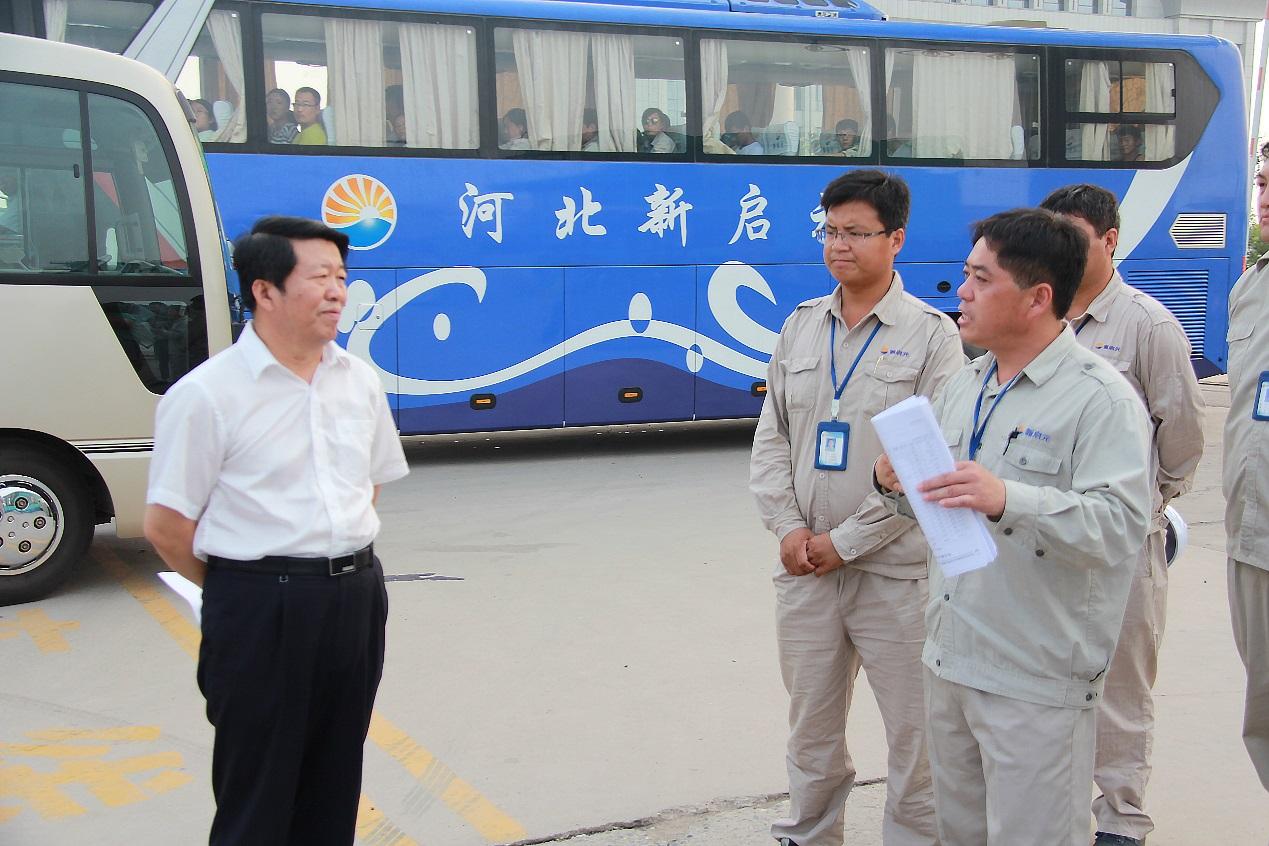 8月18日,滄州市副市長趙國權與省安全專家組,在渤海新區張國棟書記、中捷產業園區呂振華書記的陪同下,到新啟元公司進行安全調研。集團公司總經理于國臣、新啟元公司總經理喬樹華、總經理助理劉華冰及部門經理進行接待。