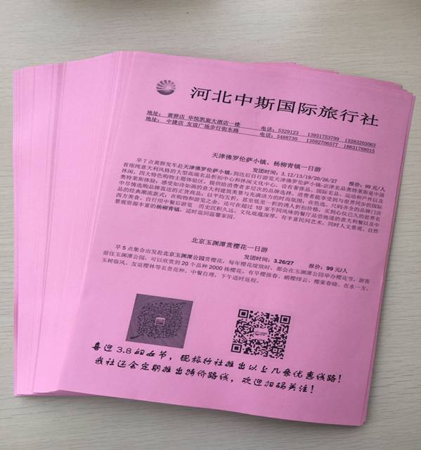 春季正是花開(kāi)柳綠、服裝換季的季節(jié),旅行社全體成員談?dòng)懷芯浚谌路菝恐芡瞥鎏貎r(jià)旅游團(tuán),北京玉淵潭公園賞櫻花一日游,天津佛羅倫薩小鎮(zhèn)、楊柳青古鎮(zhèn)休息購(gòu)物一日游,為黃驊、中捷百姓提供一個(gè)踏青賞花、游、購(gòu)、娛的服務(wù)平臺(tái)。