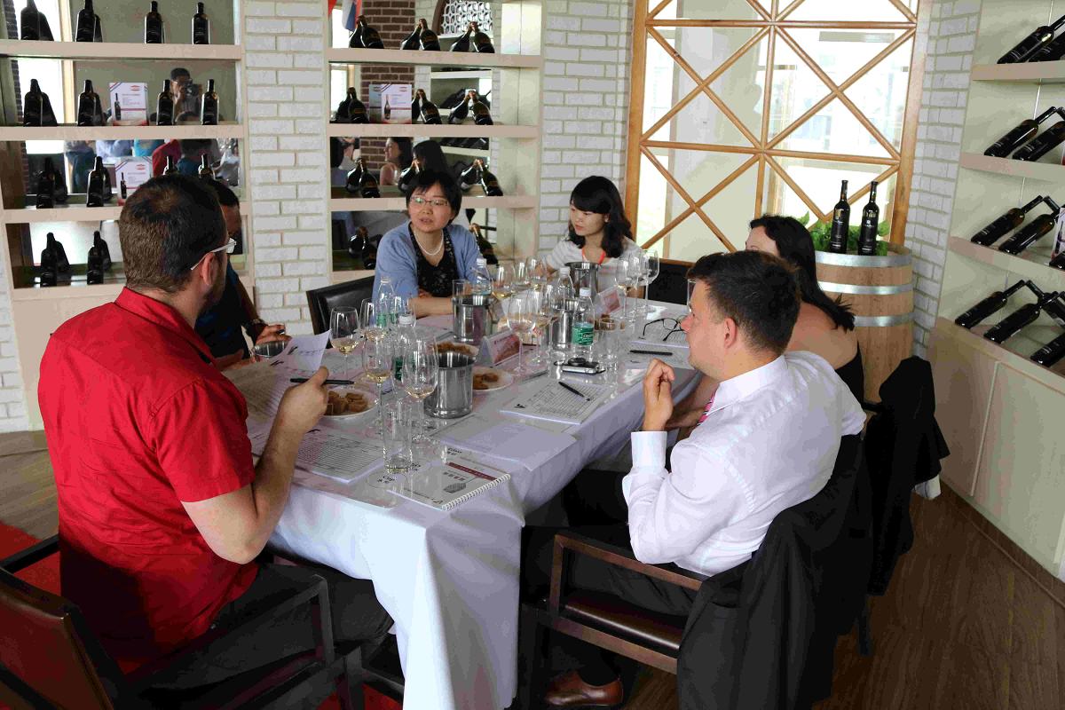 隨后主持人宣布葡萄酒品鑒正式開始,來自多個國家的15位專業品酒師分組對參賽葡萄酒進行專業的、科學的品鑒,同時進行認真的打分。