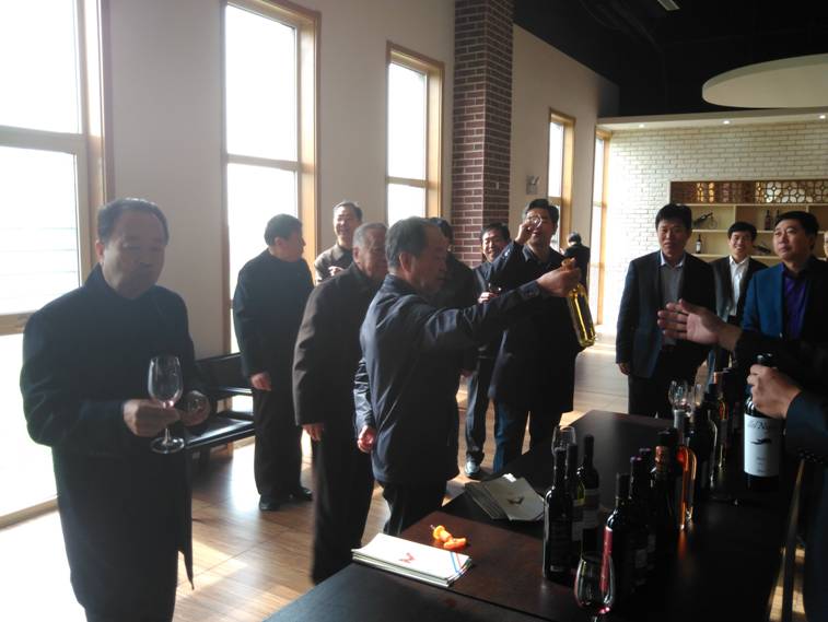 參觀完畢后,又對酒莊產品進行了品鑒。集團董事長將酒莊特色產品向大家做了一一介紹,總經理張鵬詳細介紹了酒莊現狀及經營情況。老領導們對酒莊的建設及葡萄酒產品給予了高度評價,對酒莊未來的發展寄予厚望。