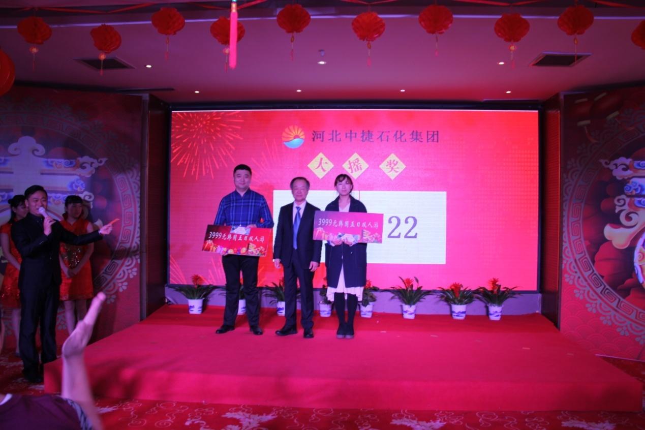 頒獎環節過后,形式各異的歌曲、舞蹈、魔術等節目表演和交替進行的拍獎、抽獎活動把整場年會推向高潮。領導與員工歡聲笑語、真情互動,呈現了中捷石化大家庭的歡樂和諧。