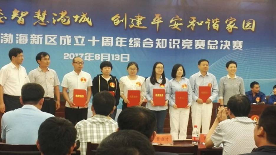 6月13日,渤海新區組織的“打造生態智慧港城,創建平安和諧家園”綜合知識競賽決賽在渤海國際大酒店舉行,新啟元公司代表隊與其它九支隊伍通過初試進入總決賽,并以210分的優秀成績獲得優秀組織獎。