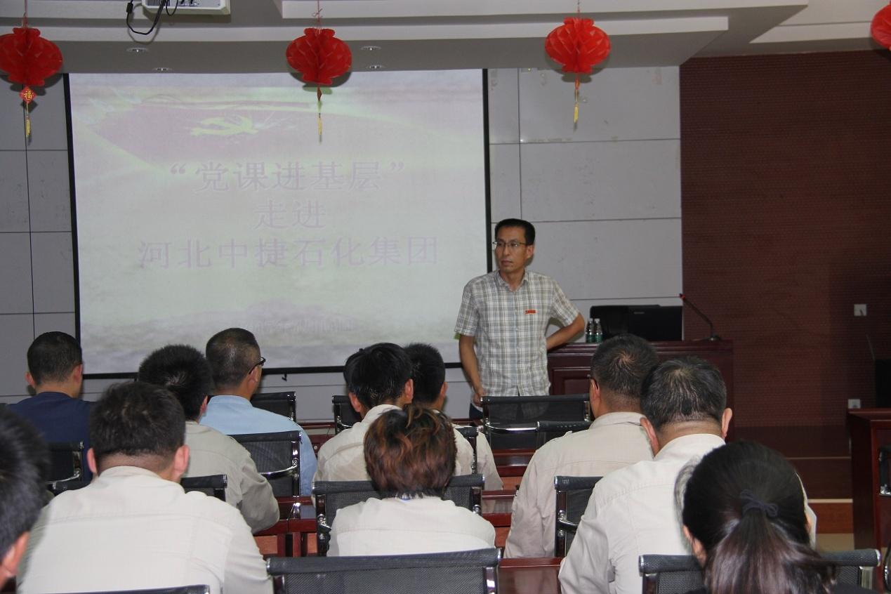 為紀念中國共產黨建黨96周年,深入推進 “兩學一做”學習教育活動,7月14日,中捷產業園區組織部與教育黨工委聯合組織的“黨課進基層”活動走進中捷石化集團,集團各黨支部黨員代表共70人參加此次活動,集團黨委書記劉國新出席并主持講話。