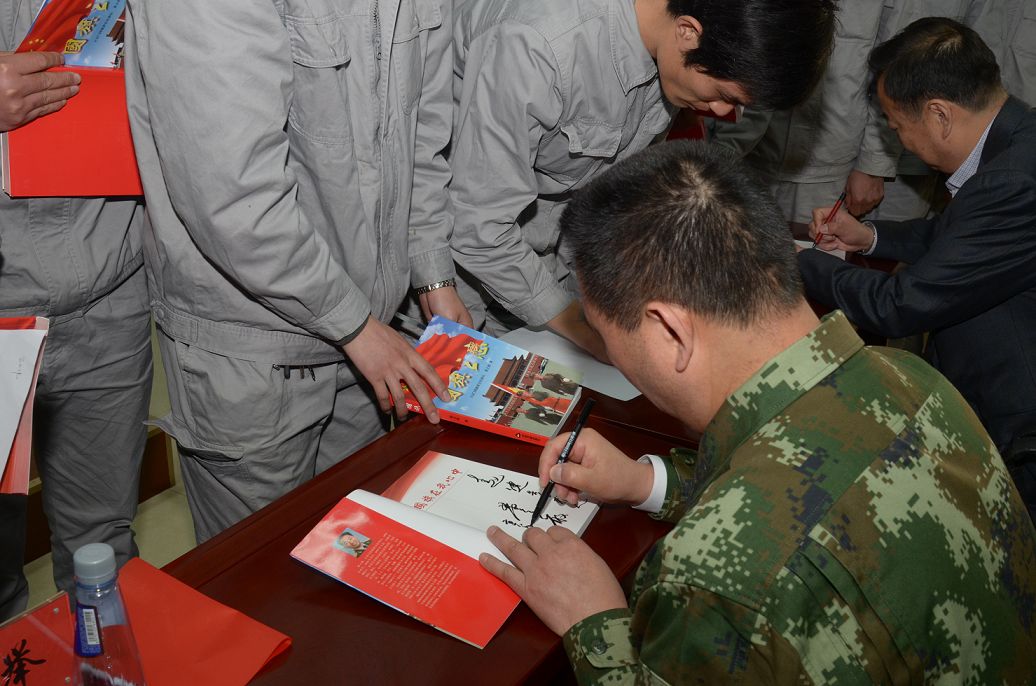 最后,大家移步科研樓六樓會議室,聽取兩位老班長進行國旗報告。老班長結合自身經歷和感受,深情地講述了五星紅旗的故事,用樸實無華而又催人奮進的語言表達了對國家和國旗的熱愛。董立敢班長更是播放了許多有關國旗的珍貴視頻,講述了多個普通百姓與國旗的感人事跡,情到深處熱淚盈眶。演講結束后,大家依次在董立敢班長帶來的國旗上進行簽名,表達我們的愛國之情,同時,董班長也為伙伴們在其專著《國旗之戀》一書上簽字留念。