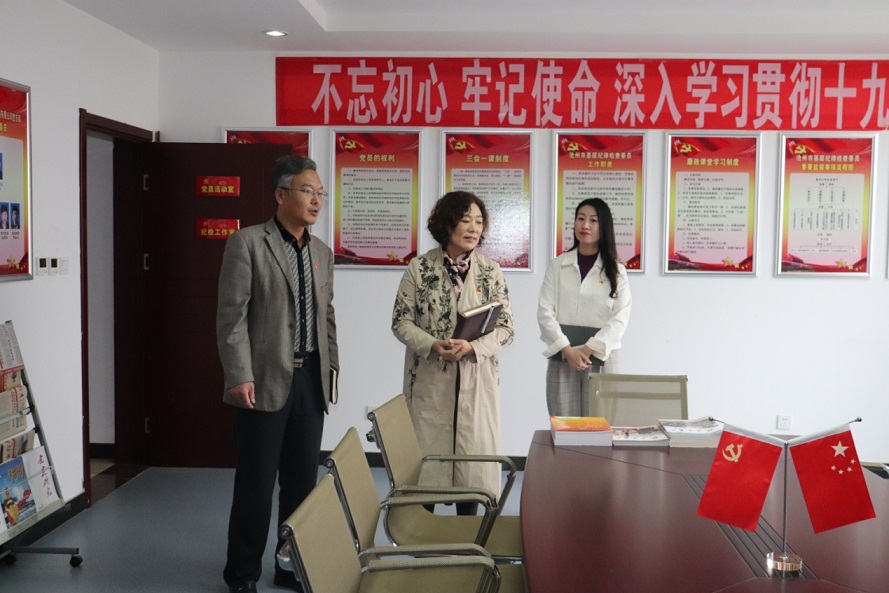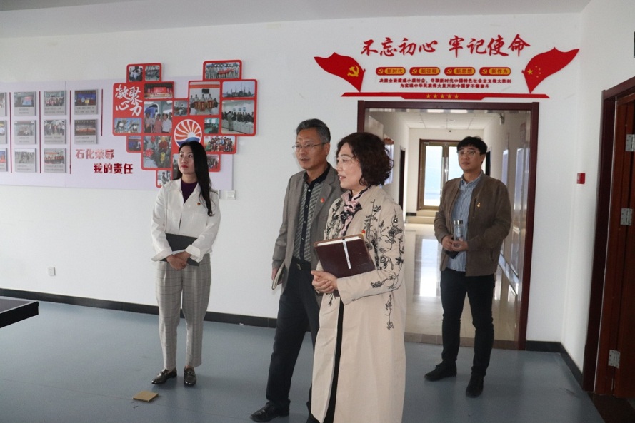 王玉芬書記一行首先視察了黨建活動陣地,查看了集團(tuán)黨委黨建文化墻、黨員活動室、圖書室等黨建板塊,對集團(tuán)黨委黨建硬件設(shè)施給予了高度評價,同時對黨建陣地的優(yōu)化升級提出了指導(dǎo)性意見。