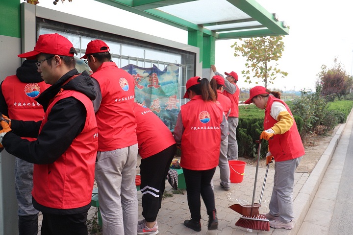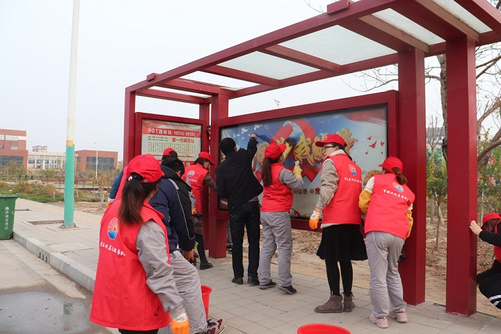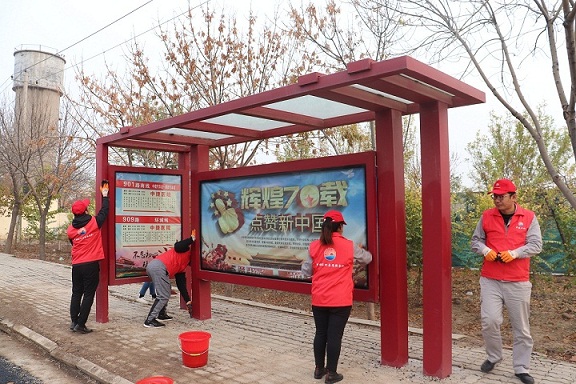 河北中捷石化志愿者服務(wù)隊組織開展“弘揚(yáng)無私奉獻(xiàn)精神?改善園區(qū)出行環(huán)境”公交站牌衛(wèi)生清潔活動