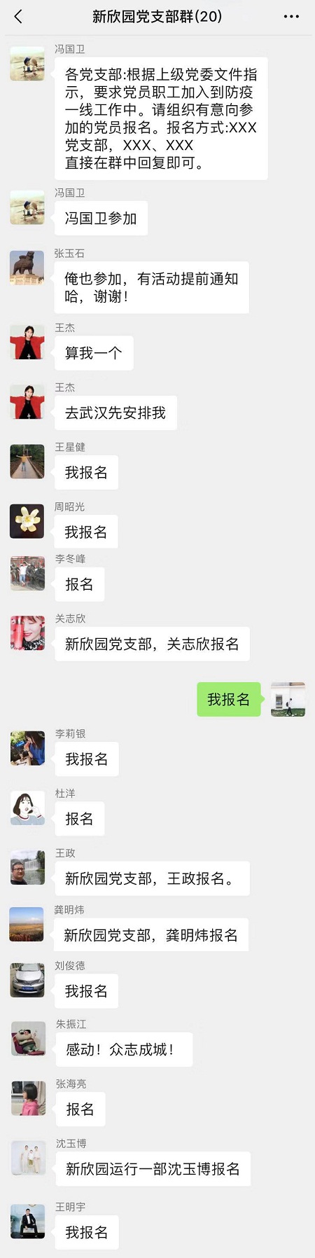 新欣園黨支部將堅決執行落實集團黨委對疫情防控工作的部署,支部全體黨員將不忘初心、牢記使命、走在前、做表率,充分發揮黨支部的戰斗堡壘作用和共產黨員的先鋒模范作用,使鮮紅的黨旗在疫情防控阻擊戰場高高飄揚。