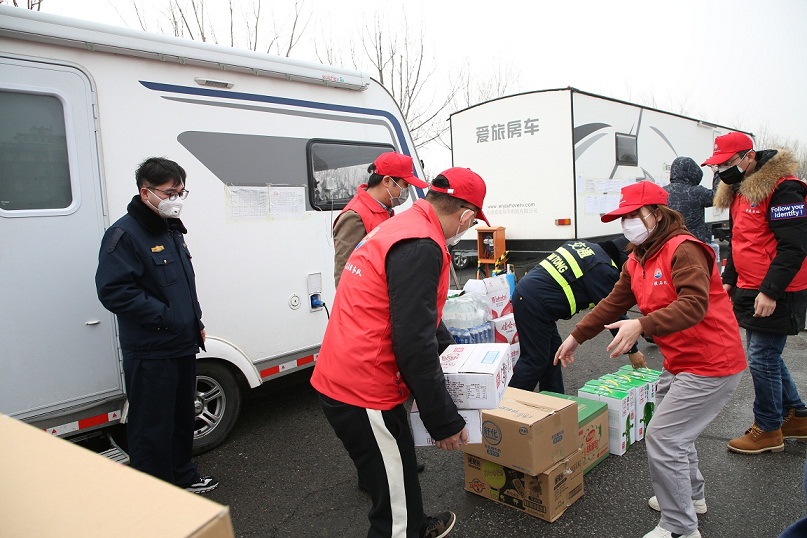 2月21日,河北中捷石化集團志愿服務隊為園區五個一線疫情防控站點捐贈方便面、純牛奶、火腿腸、面包、暖身寶、84消毒水等物資共計4000余元,用行動助力了一線疫情防控。這一箱箱物品彰顯著石化人的愛心,肩負著石化人的囑托,為一線疫情防控人員帶來了極大鼓舞。