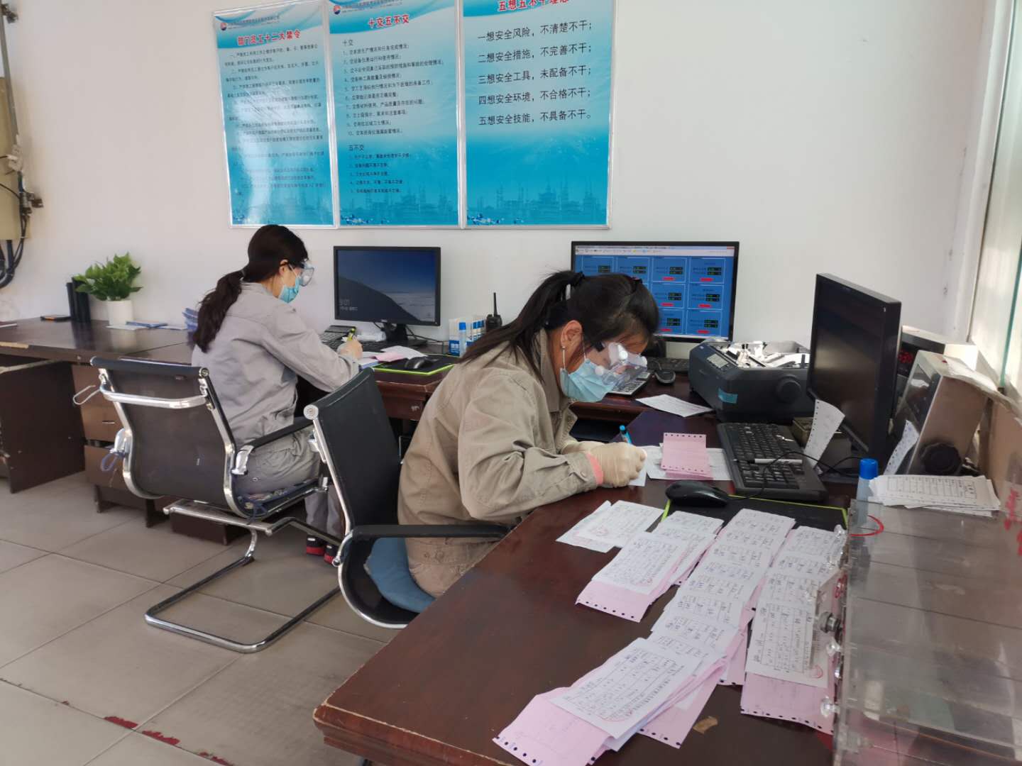 工作中,她們不僅要做好自身防護(hù),還要督促司機(jī)進(jìn)廠后做好相關(guān)防護(hù)。她們自己錄制了疫情防控溫馨提示,告知司機(jī)疫情期間的注意事項(xiàng)和工作流程。面對(duì)司機(jī)們偶爾的不理解,就面帶微笑耐心的反復(fù)解釋說明,她們知道越是這種時(shí)刻越不能掉以輕心,越要做好服務(wù)。正是因?yàn)樗齻兊娜母冻霰WC了收發(fā)系統(tǒng)的平穩(wěn)運(yùn)行,在疫情防控的關(guān)鍵時(shí)刻地磅房沒有出現(xiàn)任何問題。
