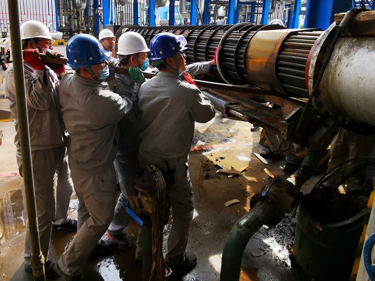 連日來,公司上下按照確保“安全、質量、進度”的整體要求,在統一的協調指揮下,干部員工同心協力、不畏艱苦,先后實施了換熱器管束更換、催化劑裝填等一系列檢修項目。過程中隨處可見黨員干部的身影,哪里最艱苦,哪里有困難,他們就出現在哪里,與技術人員一同解決問題,與青年職工一起并肩奮戰,激發了青年職工苦練內功、愛崗敬業的決心和信心,真正體現了黨員干部的模范帶頭作用。