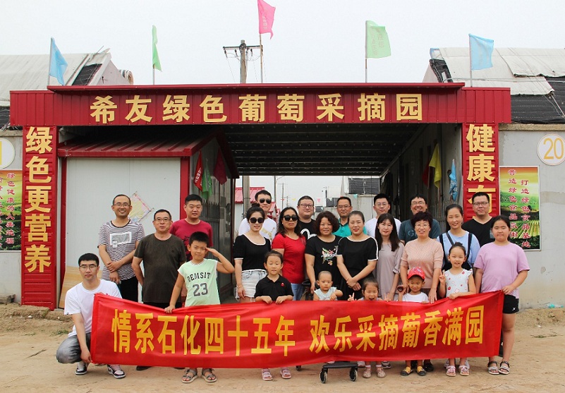 新欣園公司訊 7月18日,新欣園黨支部組織黨員干部及家屬來到周莊葡萄采摘園,開展了主題為“情系石化四十五年,歡樂采摘葡香滿園”的團建活動,團結各個“小家庭”,共建石化“大家庭”。