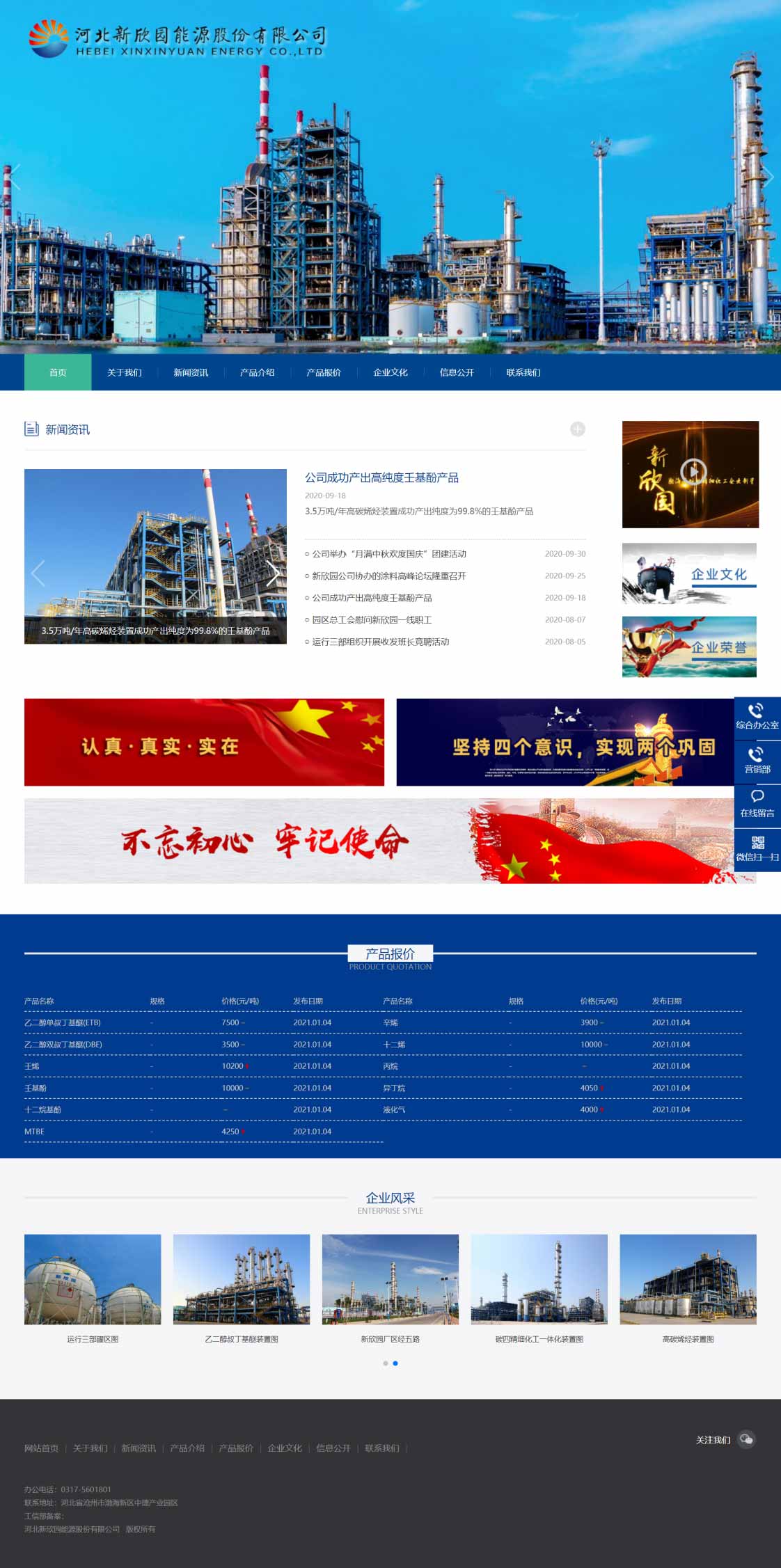 網站設置新聞資訊、產品介紹、產品報價、企業文化、信息公開等多個板塊,全面展示了公司發展歷程、員工風采、產品性能等內容,并實時更新產品價格,為廣大客戶提供了更加方便快捷了解公司發展動態和產品銷售信息的渠道。
