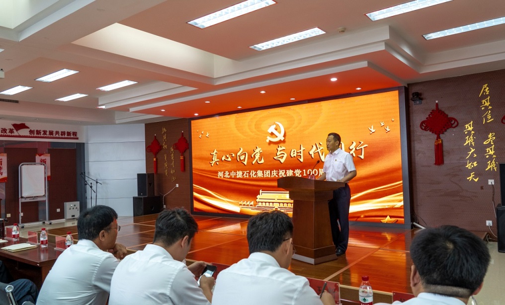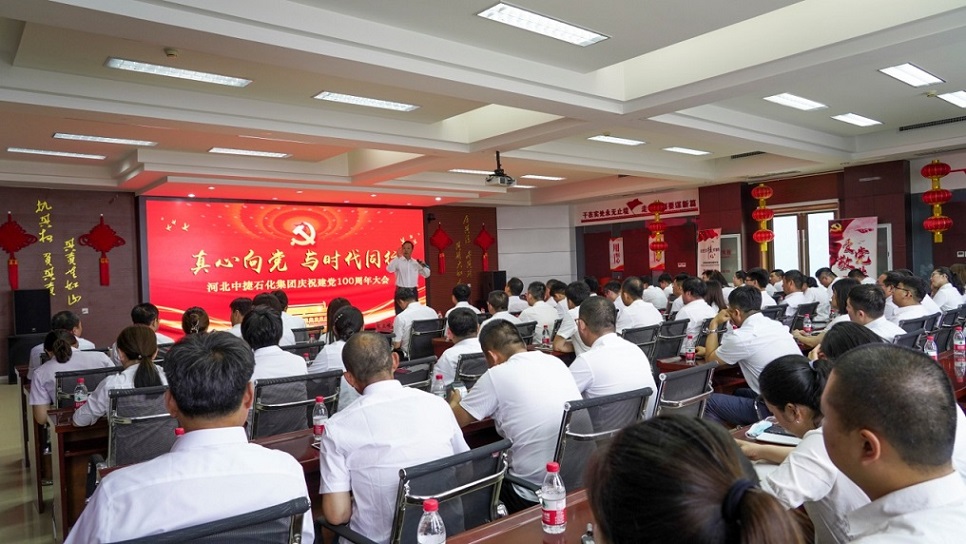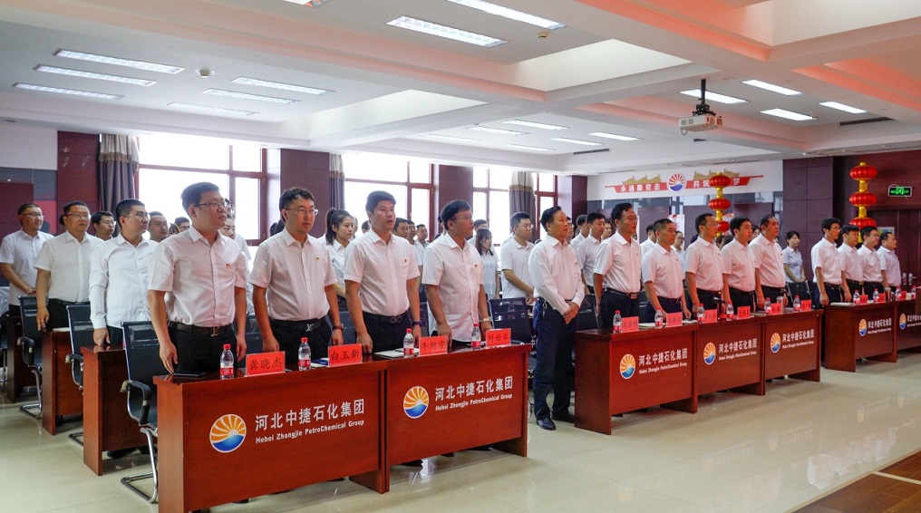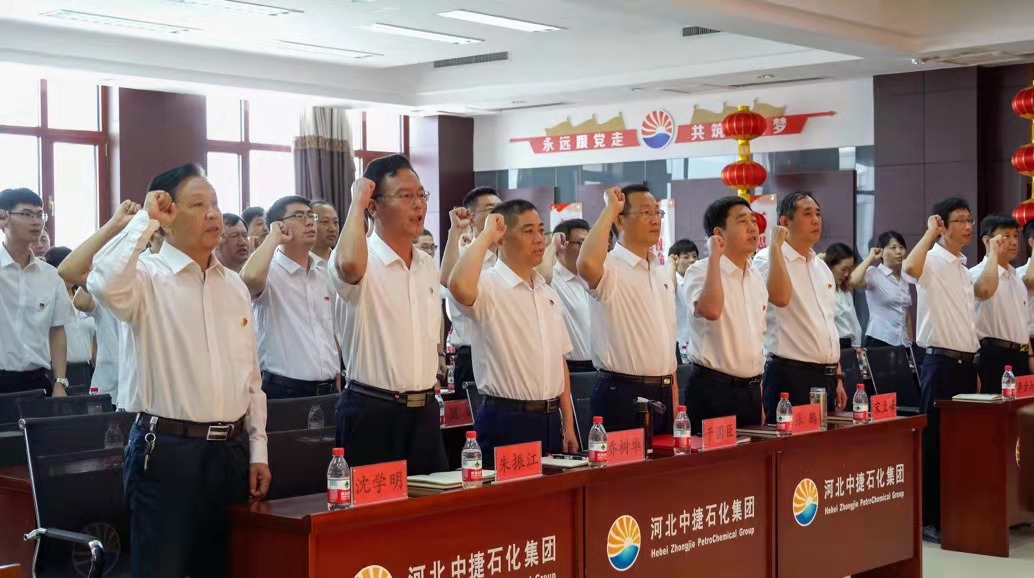 集團公司訊 為熱烈慶祝中國共產(chǎn)黨成立100周年,進一步激發(fā)基層黨組織活力,增強黨員干部的光榮感、使命感,大力營造積極向上的氛圍,弘揚正氣。同時,結(jié)合上級黨委關(guān)于黨史學習教育的要求部署和《關(guān)于在集團開展黨史學習教育的實施意見》,為把學習習近平新時代中國特色社會主義思想貫穿始終,把學史明理、學史增信、學史崇德、學史力行貫穿始終,把學黨史、悟思想、辦實事、開新局貫穿始終,進一步勉勵廣大黨員不忘初心,牢記使命,繼承和發(fā)揚黨的優(yōu)良傳統(tǒng),推動集團各項事業(yè)持續(xù)、穩(wěn)定、創(chuàng)新、發(fā)展,6月28日,河北中捷石化集團黨委組織召開了慶祝建黨100周年大會。原中捷企業(yè)黨工委書記沈?qū)W明同志,集團黨委書記于國臣同志,集團黨委副書記、總經(jīng)理喬樹華同志,以及各所屬黨支部書記,各支部黨員代表共計70余人參加了此次活動。