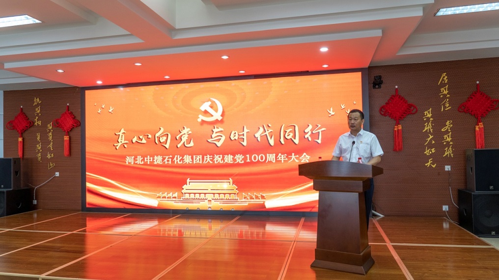 河北中捷石化集團黨委慶祝建黨100周年大會到此圓滿結(jié)束,正如于書記所講“面向未來,集團黨委將繼續(xù)以習近平新時代中國特色社會主義思想和黨的十九大精神為引領(lǐng),深學細悟?qū)嵱命h的十九屆五中全會精神,充分發(fā)揮政治核心和領(lǐng)導(dǎo)核心作用,緊緊圍繞企業(yè)發(fā)展做功課,團結(jié)一致、大膽創(chuàng)新、銳意進取,努力實現(xiàn)企業(yè)發(fā)展與黨建工作的高度融合,形成紅色文化發(fā)展新高度;繼續(xù)堅持貫徹‘認真、真實、實在’的企業(yè)精神、‘學習是石化園永不竣工的政治工程’的學習理念、‘強化拼搶闖、消除懶散閑’的工作作風和‘中捷石化唯一不變的就是變’的進取意識,擔負新使命,展現(xiàn)新作為,全心全意向‘做到’邁進;繼續(xù)堅持以黨史學習教育為契機,在按照規(guī)范要求開展各項規(guī)定動作的同時,積極落實上級黨委對集團黨建工作的部署安排,為苦干實干三年,推動滄州渤海新區(qū)實現(xiàn)高質(zhì)量跨越式發(fā)展打牢思想基礎(chǔ),作出應(yīng)有貢獻;再接再厲、砥礪奮進,在穩(wěn)扎穩(wěn)打、創(chuàng)新有為的基層黨建事業(yè)進程中,為中國共產(chǎn)黨100周年華誕獻禮。”