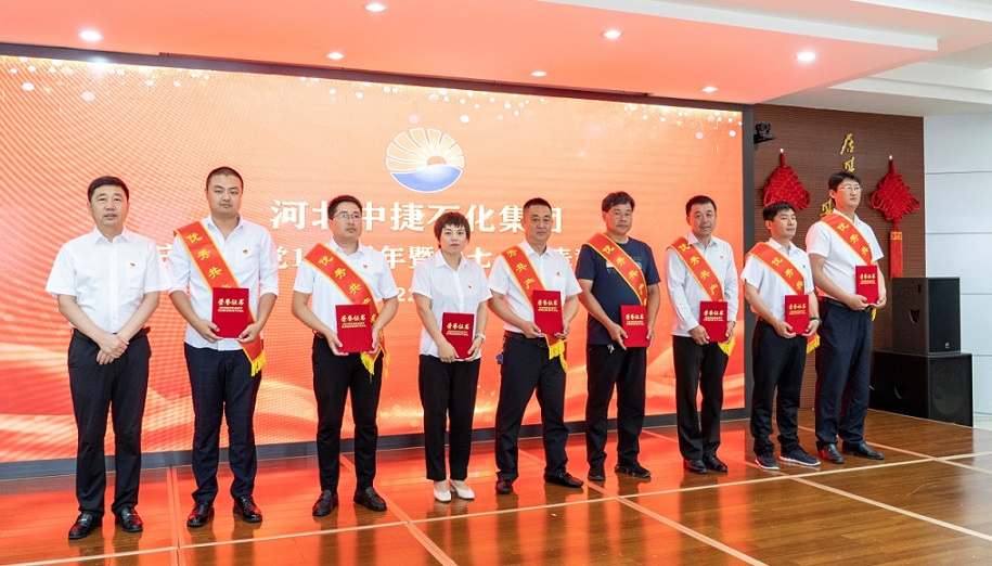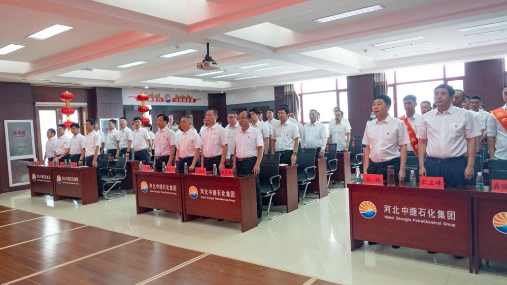集團公司訊 為隆重紀念中國共產黨成立101周年,繼續深入開展黨史學習教育,進一步激發基層黨組織戰斗堡壘作用和黨員先鋒模范作用,同時為選優樹先、弘揚正氣,不斷增強基層黨組織和廣大黨員干部職工的凝聚力、號召力和戰斗力,7月1日,河北中捷石化集團黨委組織召開慶祝建黨101周年暨“七一”表彰大會。原中捷企業黨工委書記沈學明同志,集團黨委書記于國臣同志,集團黨委副書記、總經理喬樹華同志,集團黨委副書記、紀委書記朱振江同志以及各所屬黨(總)支部書記,各支部黨員代表參加了此次活動。