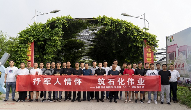 集團公司訊 為發揚集團公司擁軍優屬的光榮傳統,謳歌人民解放軍對偉大祖國和人民做出的豐功偉績,頌揚人民解放軍為保衛祖國用血肉筑起的鋼鐵長城,引領廣大職工進一步深刻領會和繼承人民解放軍無私奉獻和忠誠擔當的優良作風和革命精神,團結廣大職工立足新時代、新時期,開拓創新,扎實工作,牢記使命,堅定信念,以奮斗者的姿態,以飽滿的熱情譜寫百年石化夢的新篇章,8月1日,集團黨委組織開展了“抒軍人情懷 筑石化偉業——熱烈慶祝中國人民解放軍建軍95周年”集團2022年慶“八一”建軍節活動。集團董事長王振華,黨委書記于國臣,黨委委員、副總經理張鵬,財務總監宋立峰,以及各黨(總)支部書記、各所屬單位退伍軍人共計38人參加了此次活動。