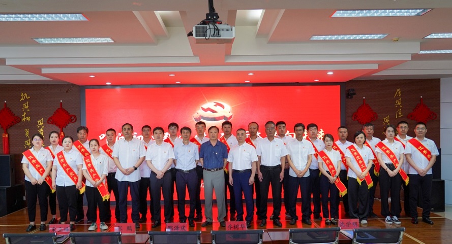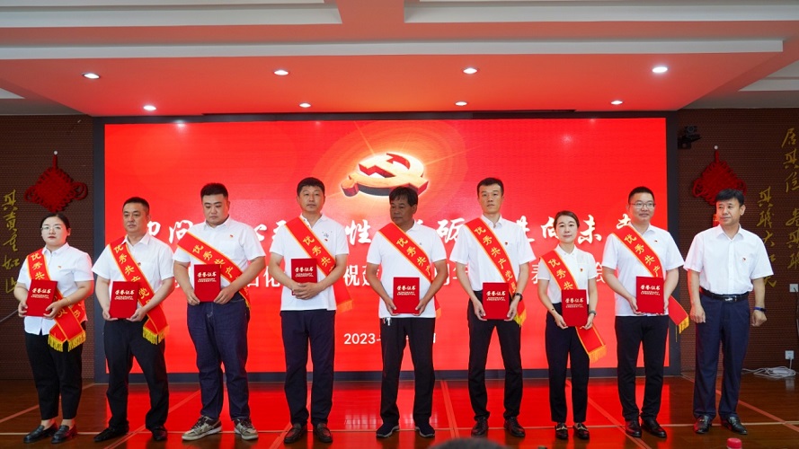 中捷產(chǎn)業(yè)園區(qū)組織人事部副部長、非公有制經(jīng)濟(jì)和社會(huì)組織黨委書記邵澤慶同志,集團(tuán)黨委副書記、總經(jīng)理喬樹華同志,集團(tuán)黨委副書記、紀(jì)委書記朱振江同志,集團(tuán)黨委委員、副總經(jīng)理張鵬同志,集團(tuán)黨委委員、新啟元黨總支部書記李志剛同志為2022-2023年度先進(jìn)基層黨組織書記、先進(jìn)基層黨組織、優(yōu)秀黨務(wù)工作者、優(yōu)秀共產(chǎn)黨員進(jìn)行頒獎(jiǎng)。
