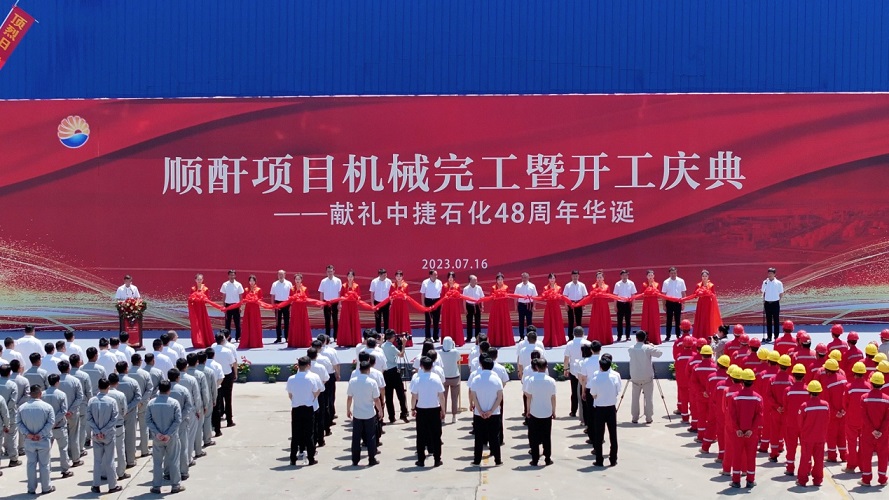 新啟元公司訊 7月16日,晴空萬里,風清散暑,順酐項目現(xiàn)場彩旗飄揚,伙伴們精神抖擻。新啟元公司“獻禮中捷石化48周年華誕——7月16日順酐項目機械完工暨開工慶典”盛裝登場。中捷產(chǎn)業(yè)園區(qū)黨組書記、管委會主任孫西讓,河北中捷石化集團董事長王振華,園區(qū)領(lǐng)導(dǎo)孫麟賀,石化辦主任劉峰,河北中捷石化集團總經(jīng)理喬樹華,集團領(lǐng)導(dǎo)張鵬、王猛、劉海軍、李金馬,新啟元公司董事長李志剛、總經(jīng)理劉華冰參加慶典活動。河北中捷石化集團黨委書記于國臣主持盛典。