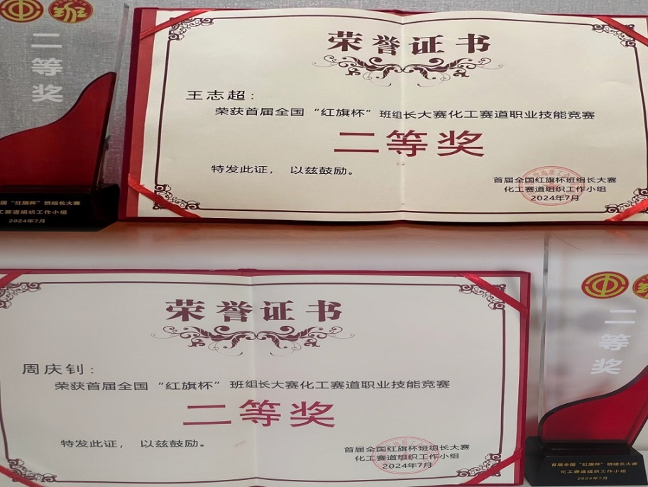 新啟元公司訊 在集團工會的安排部署下,新啟元公司運行一部王志超、周慶釗分別以全國44名、76名的優異成績再次斬獲國家級比賽——首屆全國“紅旗杯”班組長大賽化工賽道競賽二等獎,這是他們繼2023年12月“萬華杯”首屆全國化工和醫藥行業班組職業技能大賽全國總決賽三等獎后的又一次重大突破。