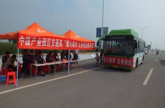 九月,一個(gè)開學(xué)的季節(jié)。為了緩解河北農(nóng)大中捷校區(qū)新生“開學(xué)季”的交通困難,我公司在9月10日至11日開展了一次大型的“愛心助學(xué)、義務(wù)接送”活動(dòng),免費(fèi)接送河北農(nóng)大新生和家長(zhǎng)到中捷校區(qū)入學(xué)。