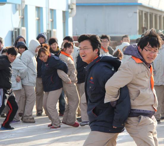 上午9時,在凜冽的寒風中,伴隨著一聲號響,大賽拉開帷幕。心心相印(背夾球)、三人四足等既考驗團隊協作能力又極富樂趣的項目相繼進行。員工們在歡聲笑語中感受著新春的喜悅,在一次次跌倒又爬起的堅持中點燃永不服輸的斗志,在互動交流中增進了配合的默契……