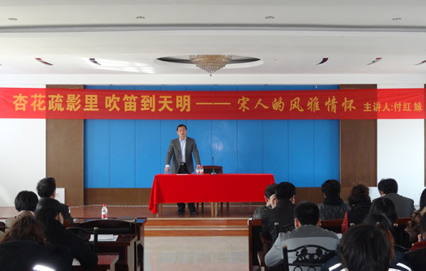 3月22日,河北中捷石化集團和黃驊報社聯合舉辦以“杏花疏影里 吹笛到天明——宋人的風雅情懷”為主題的講座。此次講座,公司邀請了滄州師范學院中文系教授、北京大學文學碩士付紅妹為主講,同時應邀到場的還有渤海新區(qū)宣傳工作領導小組常務副組長、宣傳顧問劉桂茂,中捷產業(yè)園區(qū)組宣部部長田永斌,黃驊報社社長楊勇,黃驊報社副主編李東明,中捷石化集團總經理于國臣等公司領導,以及集團公司文化宣傳員和文學愛好者。